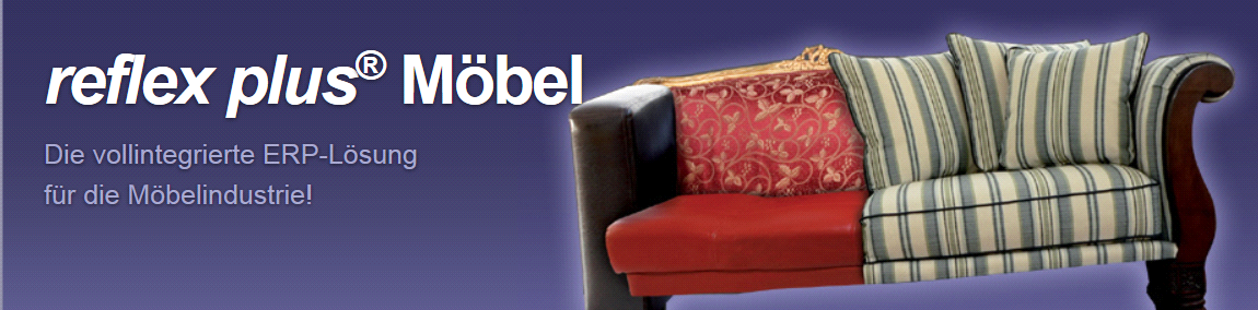 reflex plus® Möbel, das integrierte Software-Paket ist exakt auf die Anforderungsprofile der Möbelherstellung, des Imports und des Großhandels zugeschnitten. Die Software reflex plus® Möbel unterstützt den gesamten Arbeitsprozess von Auftragserfassung, Kapazitätsplanung, Materialwirtschaft und Produktion bis zur Auslieferung und Fakturierung.