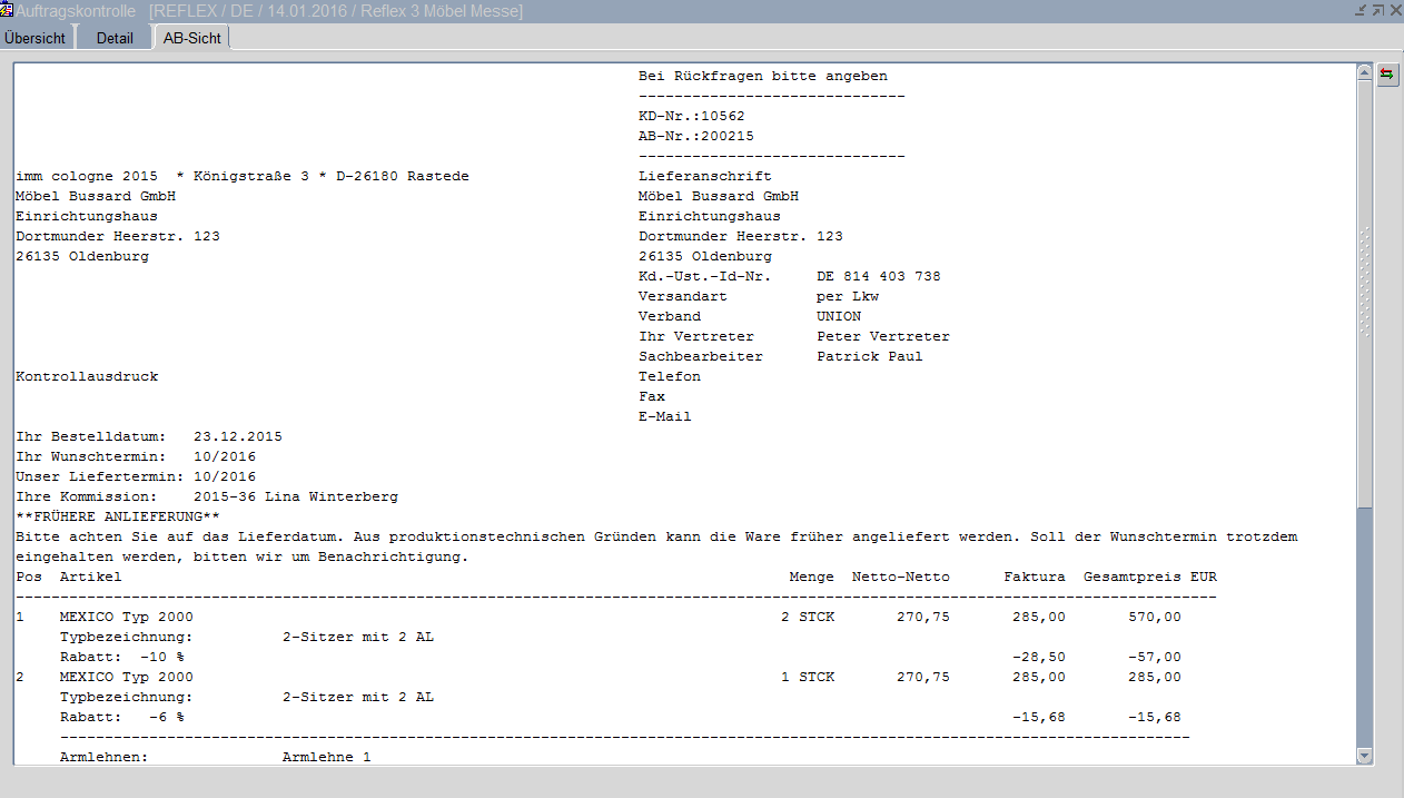Auftragskontrolle - AB-Sicht