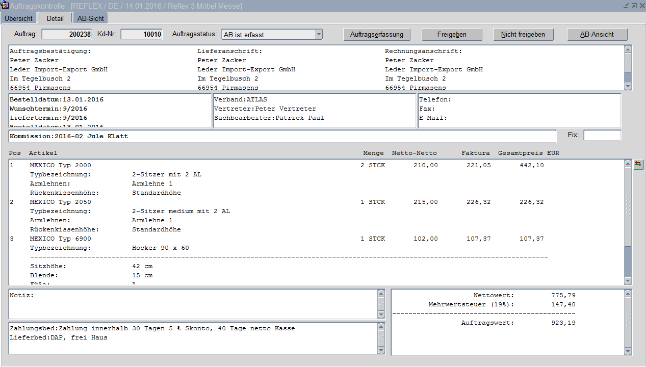 Auftragskontrolle - Detail