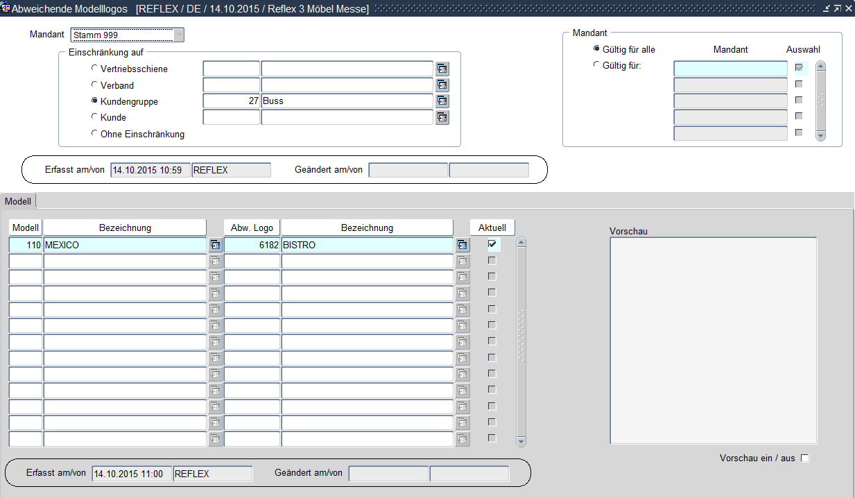 Wird ein Modelllogos über eine bestimmte Vertriebsschiene, an einen Verband, Kunden oder einer Kundengruppe oder auch ohne eine bestimmte Einschränkung nach außen mit einer anderem Modelllogo ausgezeichnet, so wird hier das abweichende Modelllogo hinterlegt.