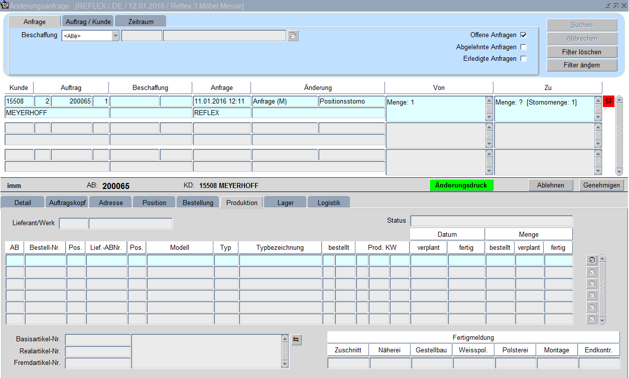 Im Falle einer Produktion der Auftragspostionen, können hier die einzelnen Fortschritte gesichtet werden.
