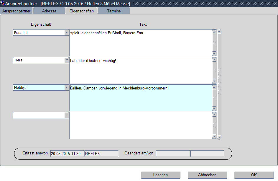 Eigenschaft des Ansprechpartners, die im nachfolgenden Feld beschrieben werden soll.