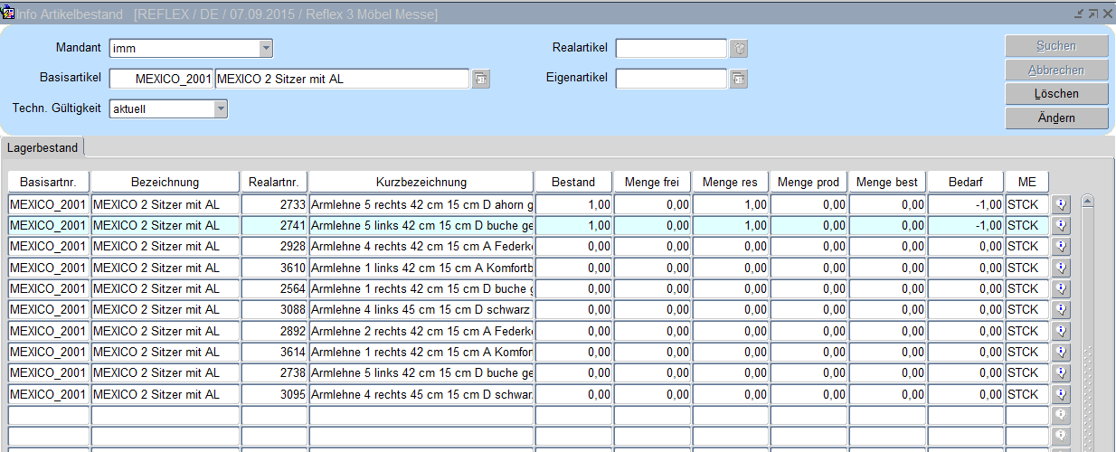 In dieser Form erhalten Sie Informationen über den gesamten Artikellagerbestand der selektierten Artikel.