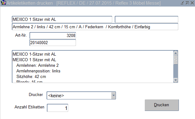 ArtikelEigenartikel Artikeletikett drucken Artikeletikett drucken Das Etikett zum Realartikel kann über den Button "Drucken" gedruckt werden.
