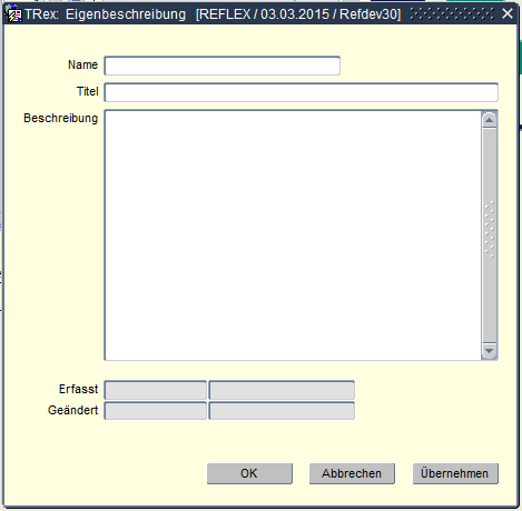 Über die Eigenbeschreibung kann der Kunde dem Report oder der Liste einen eigenen Namen, Titel und Beschreibung eingeben, die statt des Originals in der Baum-Struktur (Name) und in den Anzeigenfeldern „Report-Titel“ (Titel) und „Report-Beschreibung“ (Beschreibung) ausgegeben werden soll.