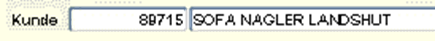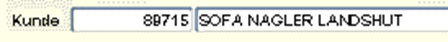 Beispiel: Der Kunde „Sofa Nagler Landshut" (=Suchname im Kundenstamm) wird gesucht: Durch die Eingabe von „sofa" im Kundensuchnamen und Bestätigung mit TAB werden alle Kunden mit dem Suchnamen beginnend mit „sofa" gefunden. Ist nur der Name „Nagler" bekannt, würde folgende Selektion weiterhelfen: „%nagler". Es werden alle Kundensuchnamen gefunden, die den Begriff „nagler" beinhalten. Beinhaltet nur ein Kundenname den Begriff „nagler" so wird bei Betätigen der TAB-Taste direkt die Kunden-Nr. mit Suchname übernommen. Auch die Suche nach „sofa%lands" führt direkt zum Erfolg. Gibt es ein Mehrfachergebnis, so wird automatisch eine Werteliste mit den entsprechenden Datensätzen geöffnet.