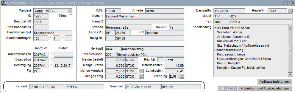 Die Änderungen der Auftragsdaten in der Produktion erfolgt standardmäßig automatisch, solange der Auftrag noch nicht in Produktion verplant ist.