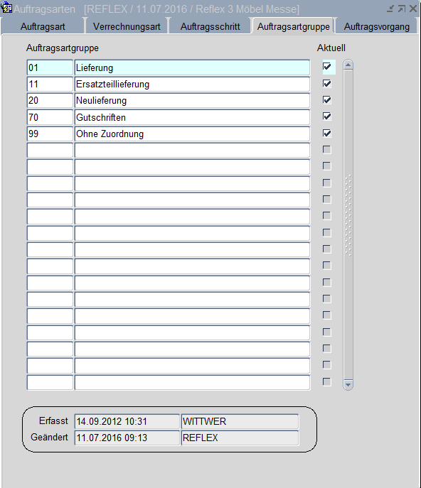 Angabe, ob die Auftragsartgruppe noch aktuell ist.