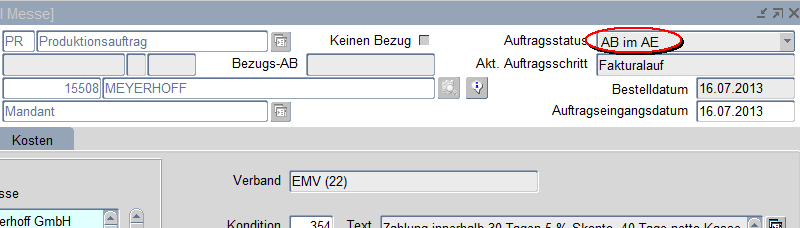 Bezieht sich der neue Auftrag auf eine bereits bestehende AB so wird an dieser Stelle die Bezugs-AB-Nr. hinterlegt. Das System zieht automatisch dann die dazugehörige Rechnungs-Nr.
