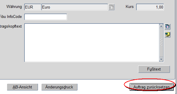 Setzt den Auftragsstatus auf "AB wird erfasst" für evtl. vorzunehmende Änderungen, zurück.