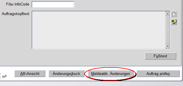 Der Button „Meldeabhängige Änderungen“ führt den Anwender aus der Auftragserfassung in die Auftragsänderung.
