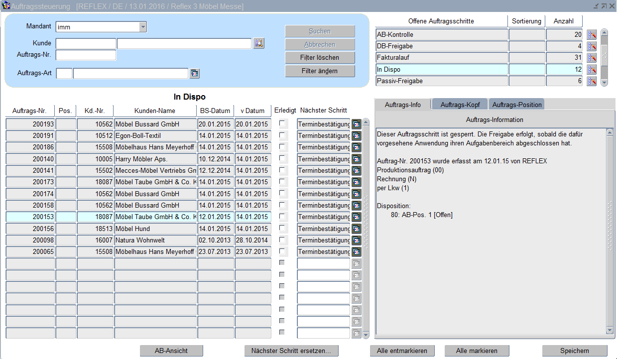 Lt. Auftragsartsteuerung nächsten aktueller Auftragsschritt.