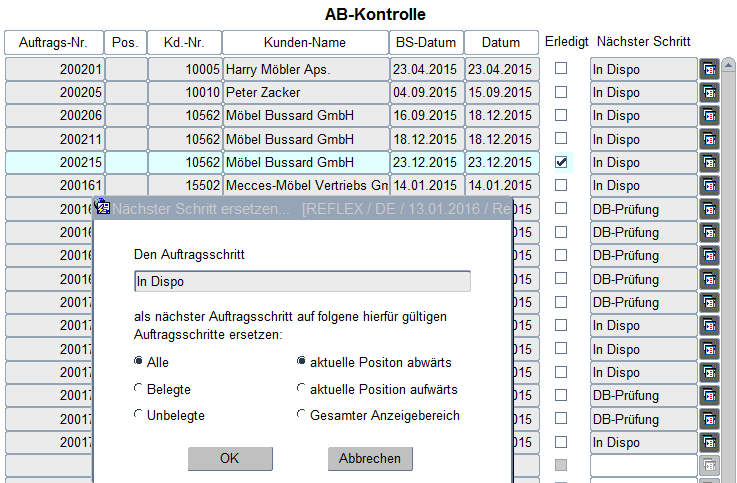 Welche Disposition noch nicht erledigt wurde und diesbezüglich der Auftragsschritt noch nicht auf erledigt gesetzt werden konnte.