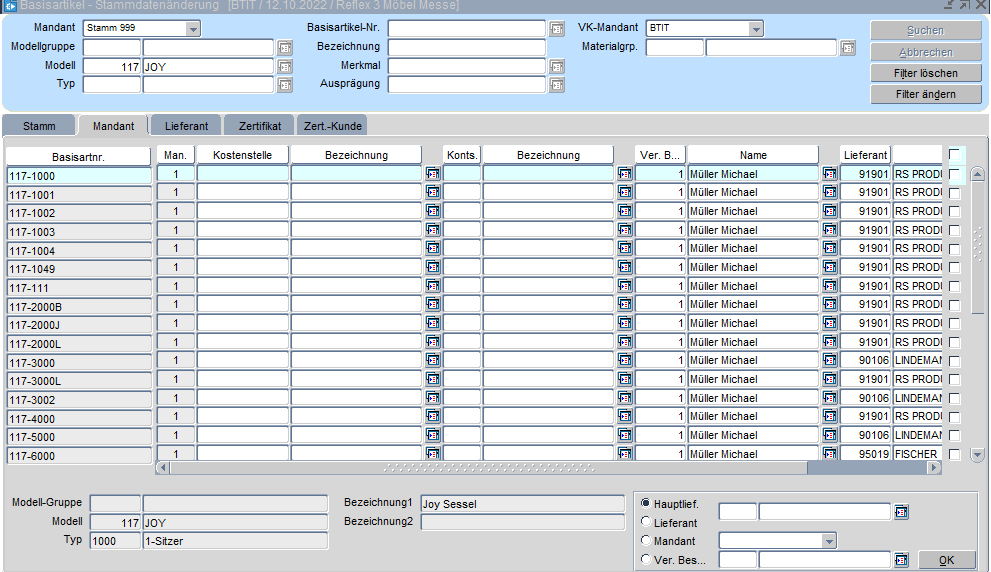 Bis auf die ausgegrauten Felder (Basisartikel-Nr. und Mandant) können die Daten überschrieben und gespeichert werden.