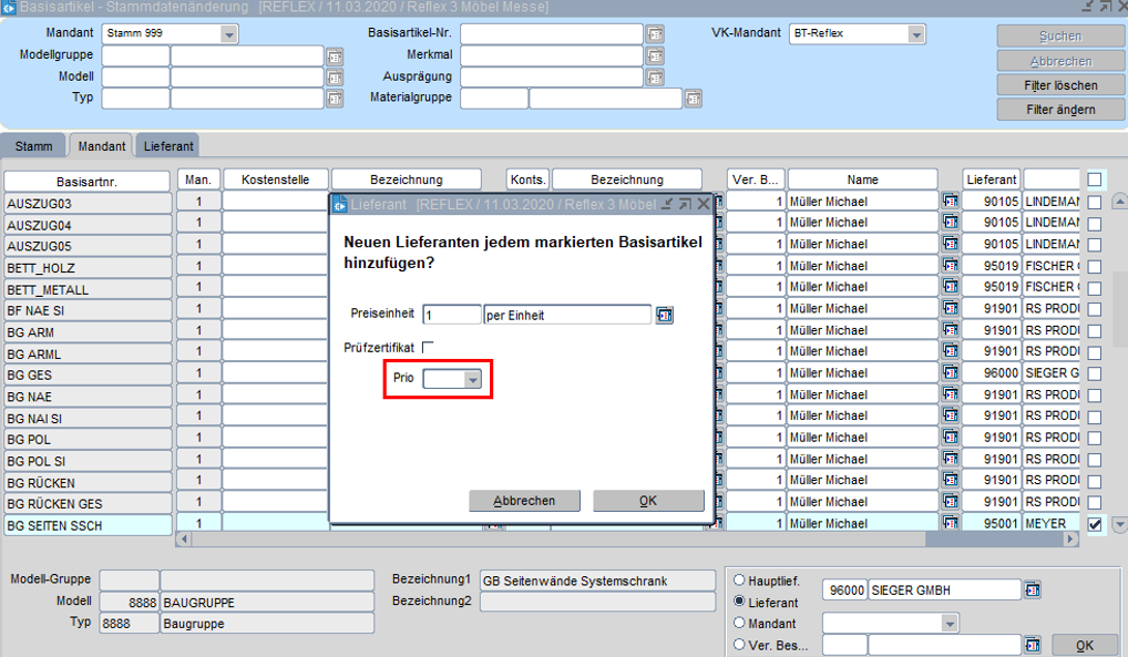 - Lieferant (soll ein weiterer Lieferant in der Registerkarte Lieferant des Basisartikels hinzugefügt werden)