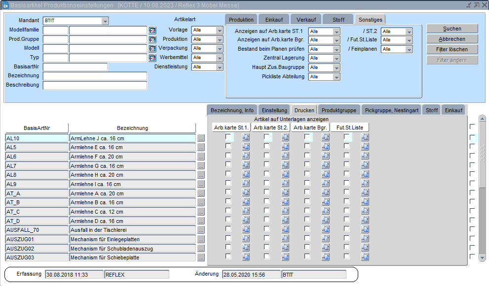 - Kennzeichnung, ob bestimmte Basisartikel auf der Arbeitskarte Stufe 1 gedruckt werden sollen.