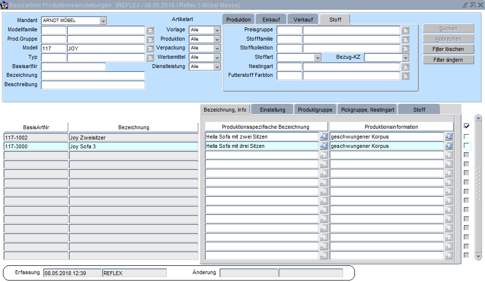 Nach der Selektion der Datensätze werden hier die Basisartikel zur Bearbeitung angezeigt. In den verschiedenen Registerkarten können nun die Einstellungen vorgenommen bzw. gesichtet werden.