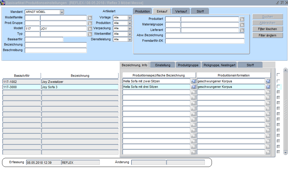 - Hinterlegung von produktionsspezifische Basisartikelbezeichnungen und Produktionsinformationen