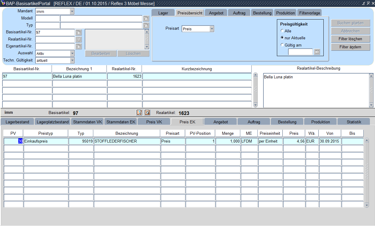 Art des Preises. Die Preisart kann für die Selektion in der Registerkarte "Preisübersicht" weiter eingeschränkt werden.