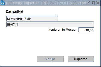 Die Teilmengen der markierten Positionen werden in den rechten Block kopiert. Vor dem Kopiervorgang wird vom Programm ein Pop-Up Fenster geöffnet in dem die gewünschte Menge zu erfassen ist. Die Position im Block bleibt von dieser Änderung unberührt.