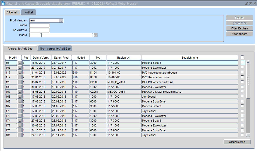 Material- und Kapazitätsbedarfe aktualisieren - Verplante Aufträge