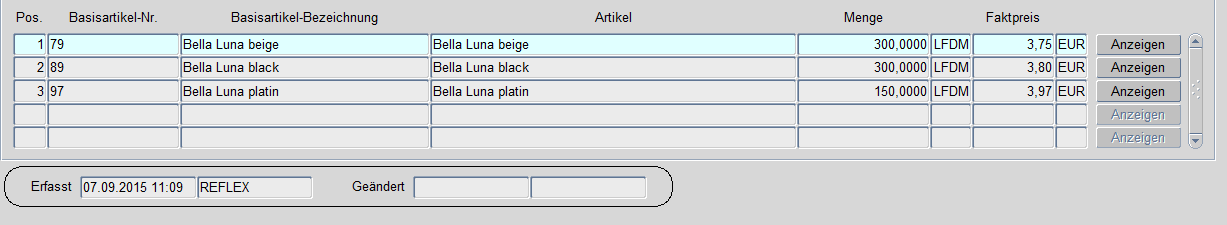 Rechts neben der Position steht der Button „Anzeigen". Hiermit werden alle obigen Felder mit den entsprechenden Daten dieser Position gefüllt.
