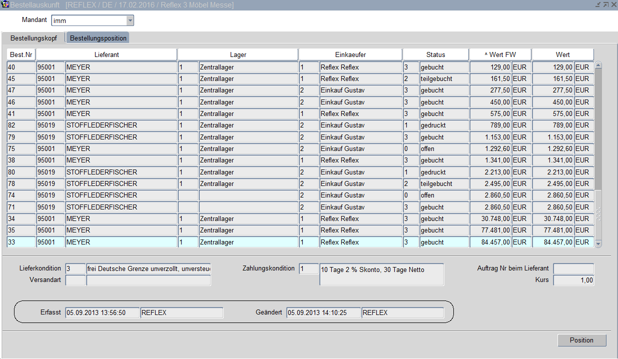 EinkaufAuskunft Bestellauskunft Bestellauskunft Die Bestellauskunft bietet eine Übersicht aller Bestellungen. Mandant Bezeichnung des Mandanten.