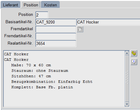 Angabe der Fremdartikel-Nr., falls vorhanden. Die Fremdartikel-Nr. wird in der Form Basisartikel - Lieferant beim jeweiligen Lieferanten gespeichert.
