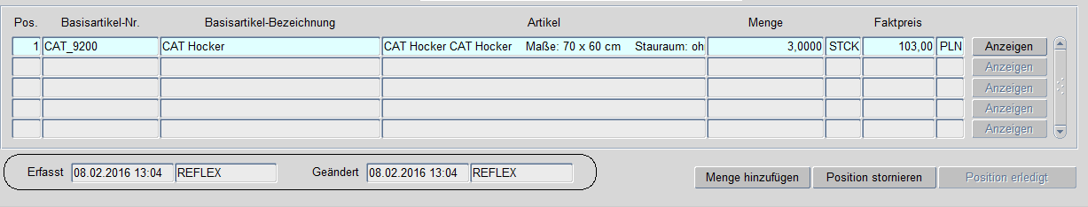 Rechts neben der Position steht der Button „Anzeigen". Hiermit werden alle obigen Felder mit den entsprechenden Daten dieser Position gefüllt.