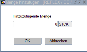 Öffnet ein Fenster, in dem die noch hinzuzufügende Menge eingetragen werden kann. Hier wird nur die Bestellmenge verändert. Eine Mail/Fax bzw. der Bestelldruck muss angestoßen werden. Die Information an den Lieferanten erfolgt nicht automatisch.