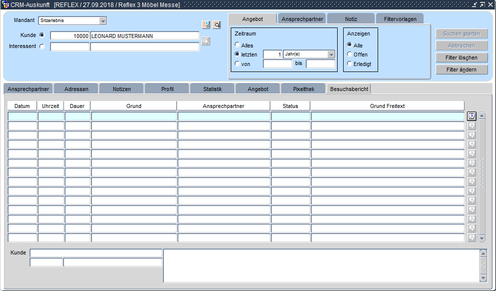 Wurden zu dem ausgewählten Kundenkonto Besuchsberichte über die "CRM Besuchsberichte" erfasst, so werden diese hier angezeigt.