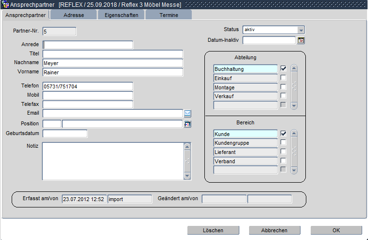 In diesem Reiter findet man das zugehörige Kunden-, Interessenten-, oder Lieferantenkonto.