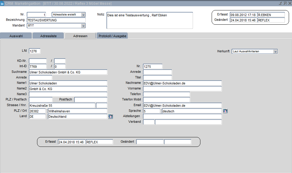Ist das Ergebnis bearbeitet, kann eine Adressenliste erstellt werden.