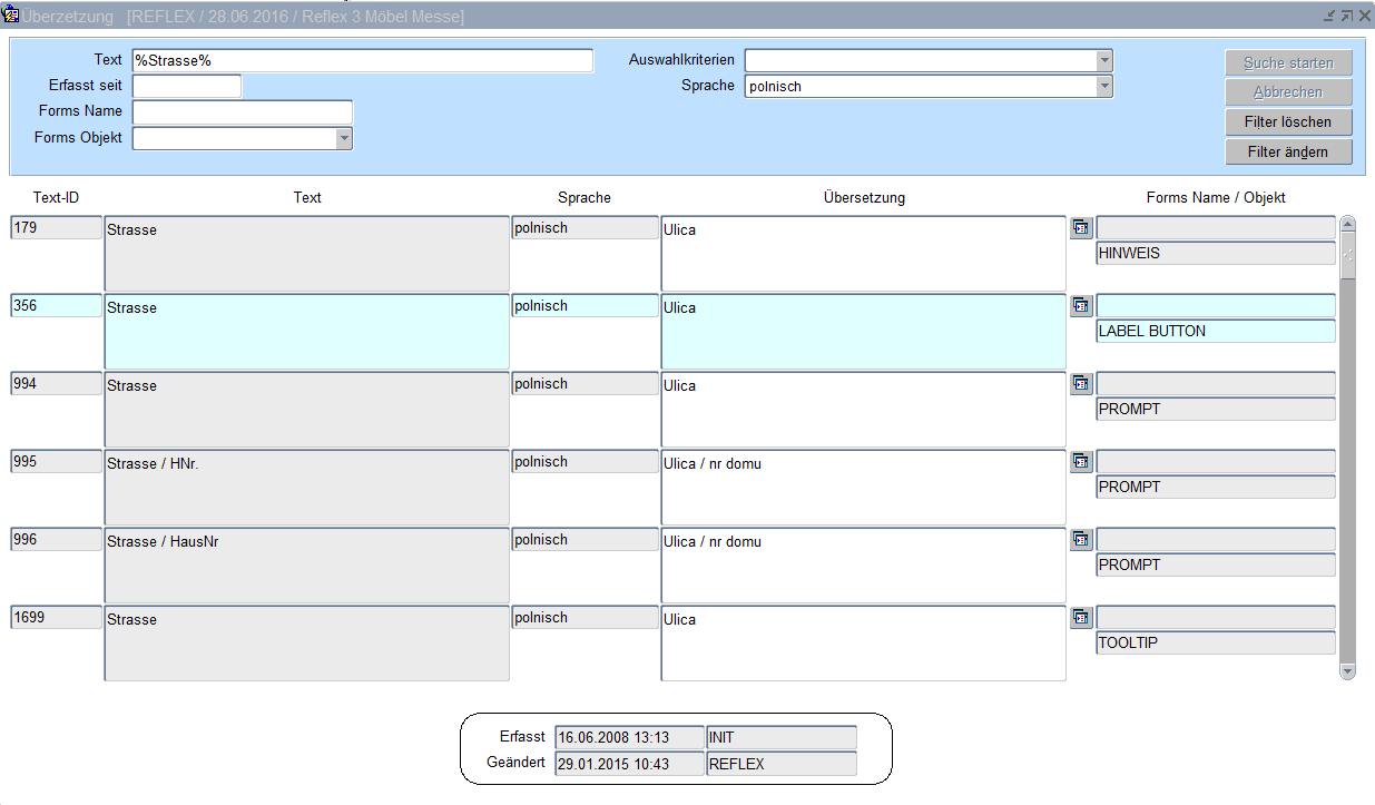 Für gleiche Texte, Wörter bzw. Begriffe in Reflex gibt es eine eindeutige Text-ID (Identifizierung) damit die Übersetzungen in verschiedenen Sprachen nur einmal erfasst werden muss.