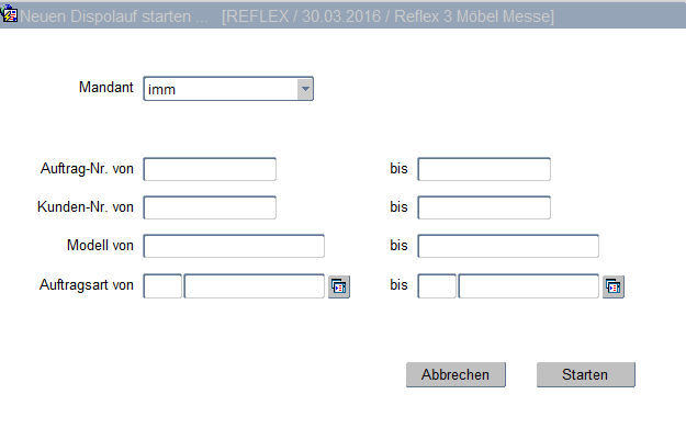 Sollen nur bestimmte Modelle für den Dispolauf selektiert werden, so erfolgt hier die Eingabe der Modell-Nr.