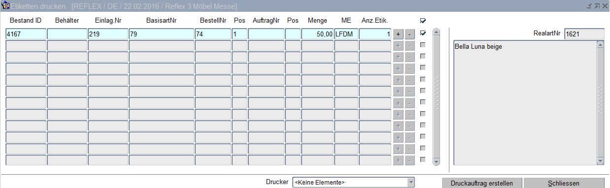 Mit dem Menüpunkt "Etiketten drucken" werden die Etiketten für die eingebuchten Waren gedruckt.