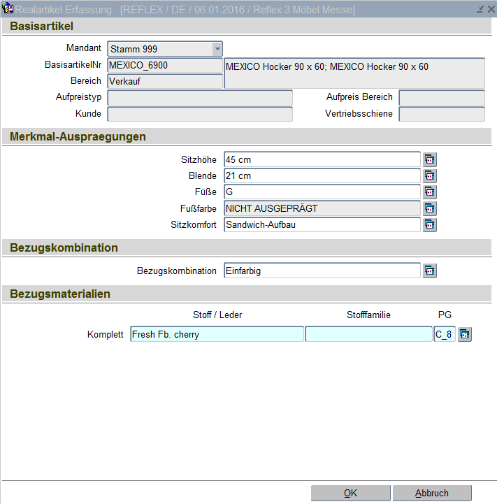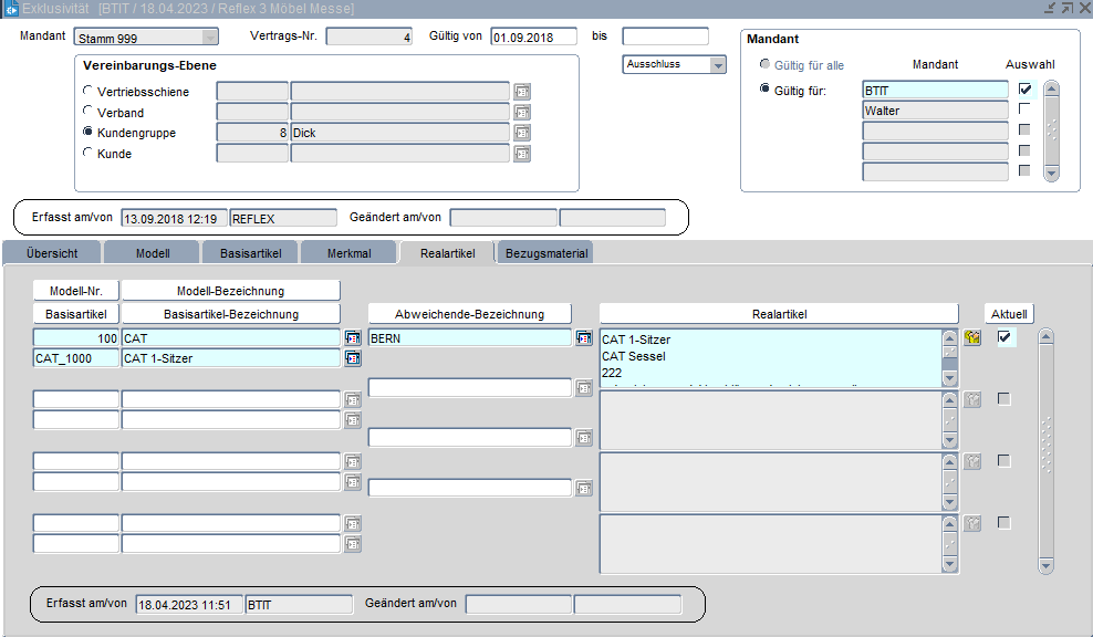 Bezeichnung des Realartikels, wofür eine Exklusivität besteht. Für die Erfassung es Realartikels wird über den nebenstehenden Button die Maske Realartikelerfassung geöffnet.