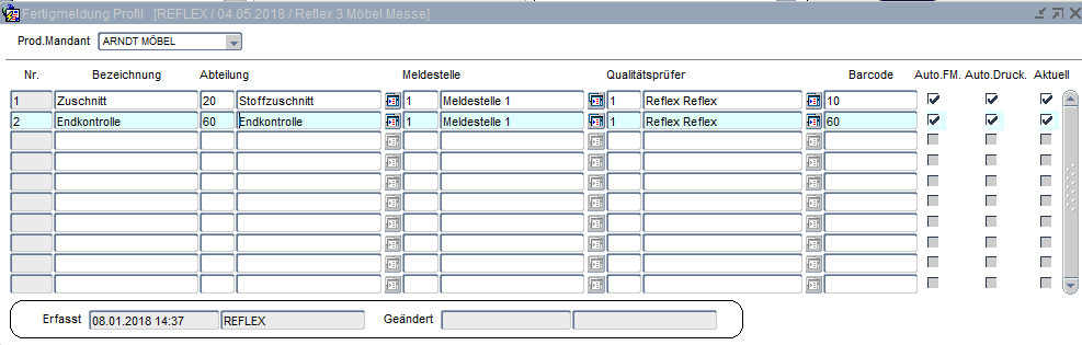 Für die Fertigmeldung per Barcodescanner kann sich der jeweilige User mit einem Profil anmelden. Das Profil beinhaltet dann nicht nur die Abteilung und den Qualitätsprüfer, sondern es gibt Voreinstellungen, die den automatischen Druck der Etiketten und das automatische Fertigmelden bestimmen.