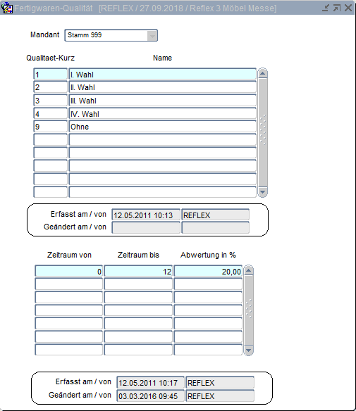 Fibu Fertigwaren-Qualität Fertigwaren-Qualität In den Stammdaten der Fibu können die verfügbaren Qualitäten von Fertigware hinterlegt werden. Bei der Auftragserfassung stehen dann für alle Artikel der Fibu Gruppe "Fertigwaren" die hier hinterlegten Qualitäten zur Verfügung.