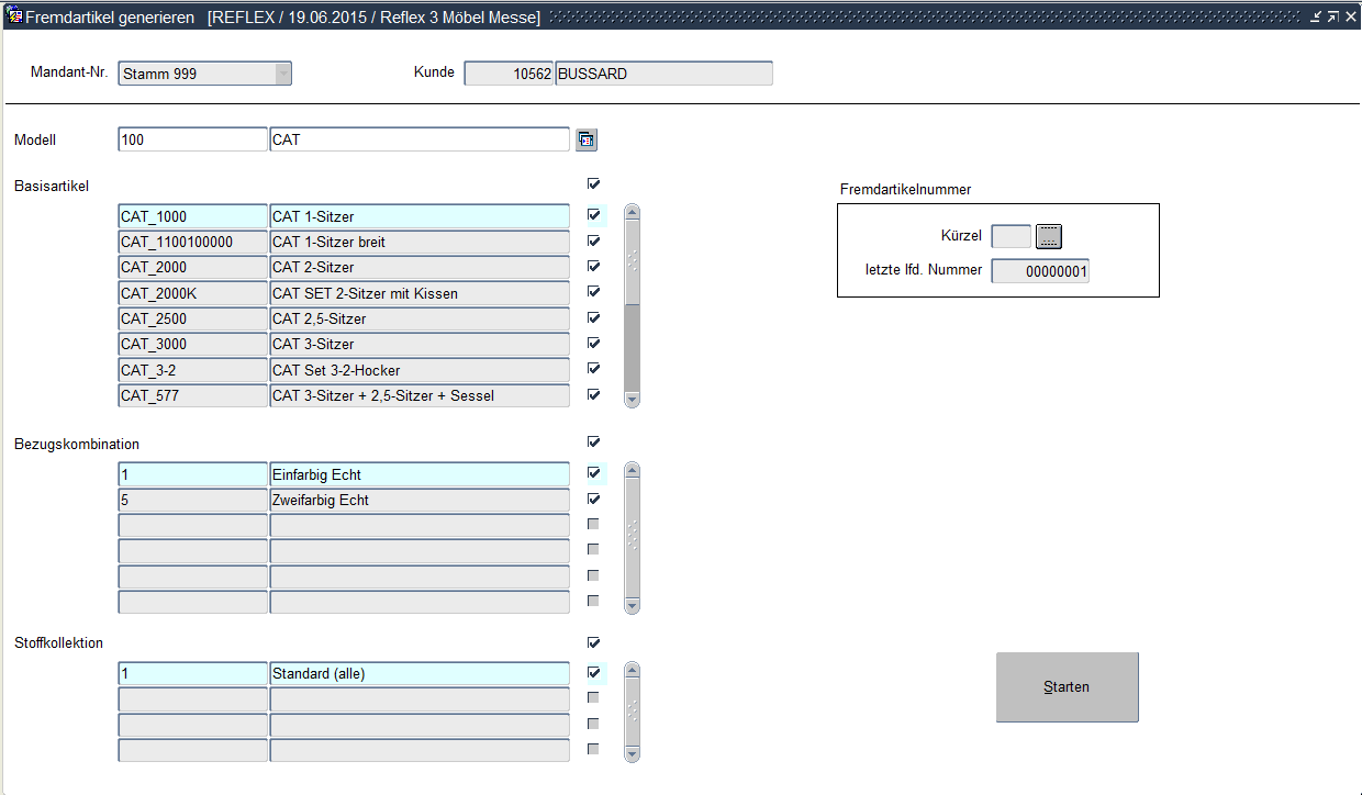Ist die Auswahl der zu generierenden Fremdartikel getroffen, so werden die Fremdartikel über den Button "Starten" generiert.