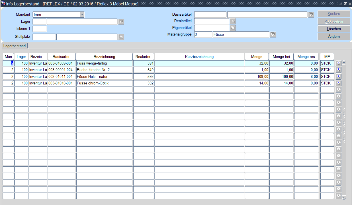 Die Lagerauskunft gibt Daten des freien und reservierten Lagerbestandes von Artikeln sowie des Lagers bekannt. Über den Info-Button gelangt das System in die Form Info - Artikel.