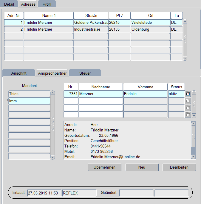 Mit dem Button „Neu" können weitere Ansprechpartner erfasst werden.