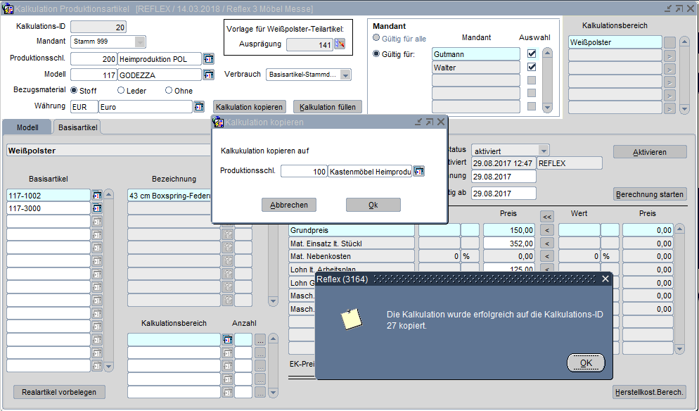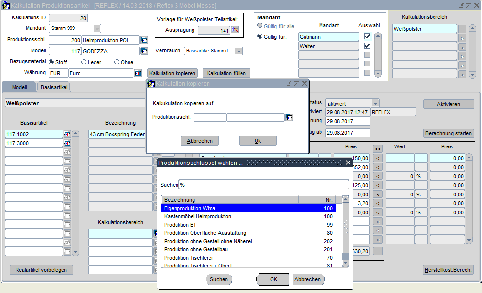 Die Produktionskalkulation wird dann verwendet, wenn der Mandant die Möbel selbst produziert.