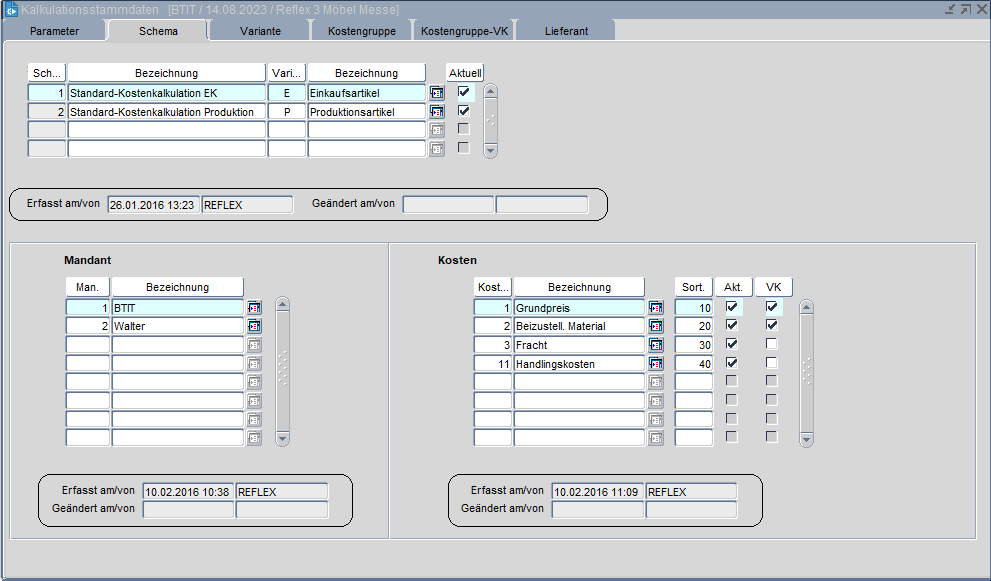 Damit die Handlingskosten nicht an ein Lieferwerk (zweite Reflex Installation erforderlich) übergeben werden, wird das Kontrollkästchen „Verkauf Ja / Nein“ im Schema der Kalkulationsstammdaten auf "Nein" gesetzt.