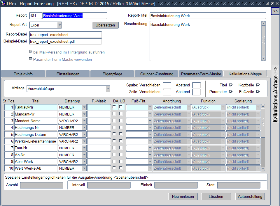 In der Anwendung „Report-Erfassung“ wurde die Kalkulationsmappe mit der Spalte „ÜB“ erweitert. Hierüber kann gesetzt werden, ob diese Ausgabewerte über die Datenverarbeitung übersetzt werden soll (Häkchen) oder nicht (kein Häkchen).
