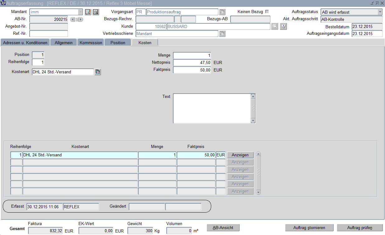 Auftragserfassung Kosten