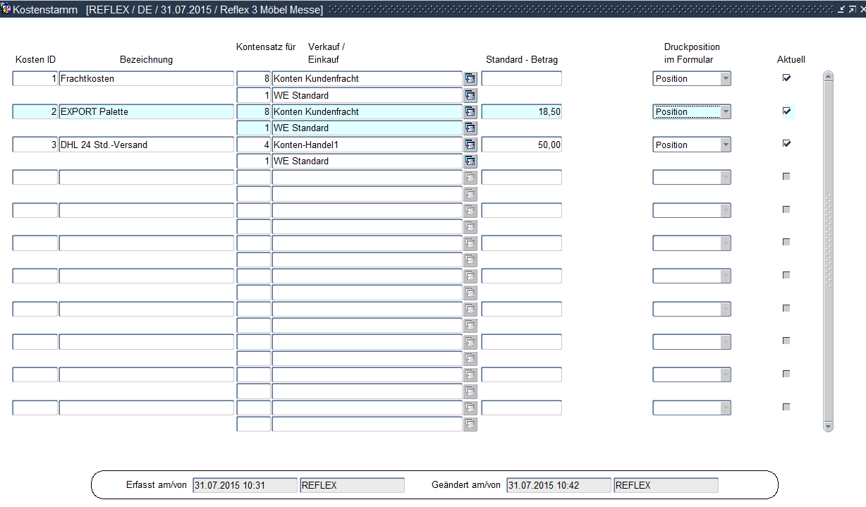 In diesem Stammdialog werden Kosten gespeichert und den Kontensätzen zugeordnet.
