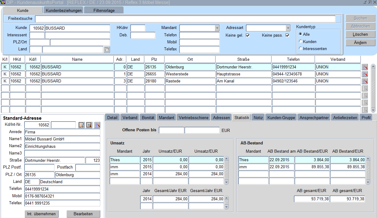 Statistische Umsatz- und AB-Bestandswerte je Kunde/Mandant und Jahr werden hier aufgeführt und summiert.