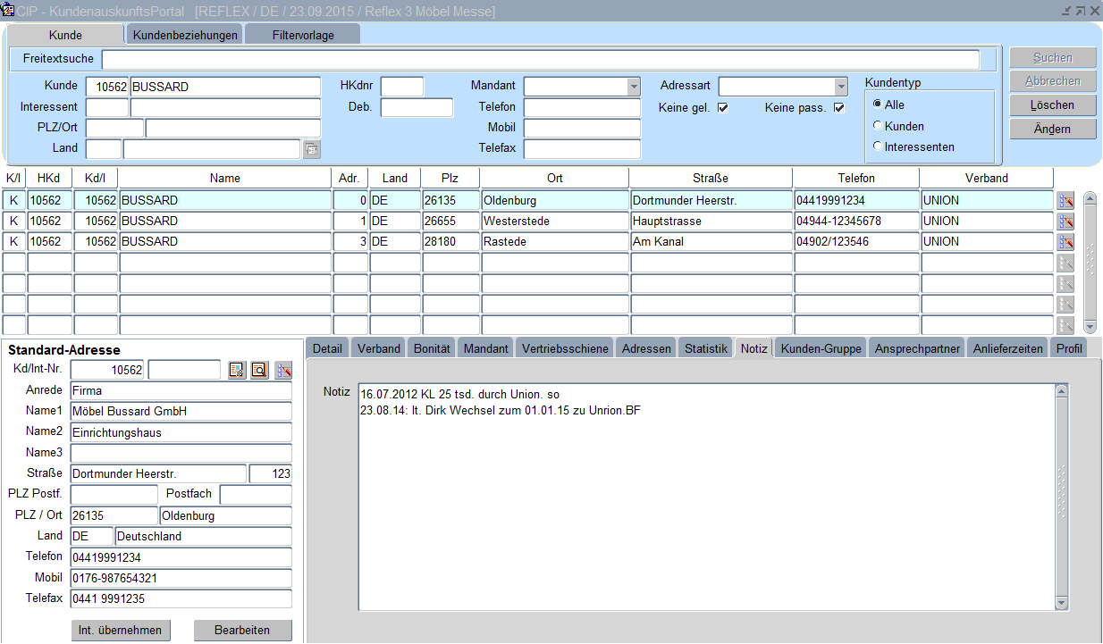Wurde in den Kundenstammdaten eine Notiz zum Kunden hinterlegt, so ist diese in der Registerkarte "Notiz" sichtbar.