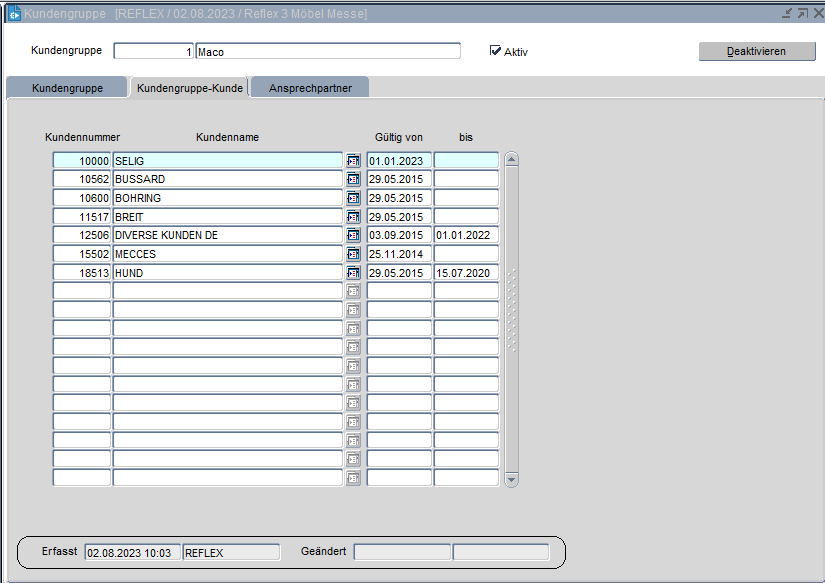 Einer Kundengruppe können einzelne Kunden zugeordnet werden. Bei der Zuordnung einer Kundenummer zu einer Kundengruppe kann bei der Erfassung des „Gültig von“ Datums auch ein in der Vergangenheit liegendes Datum erfasst werden.
